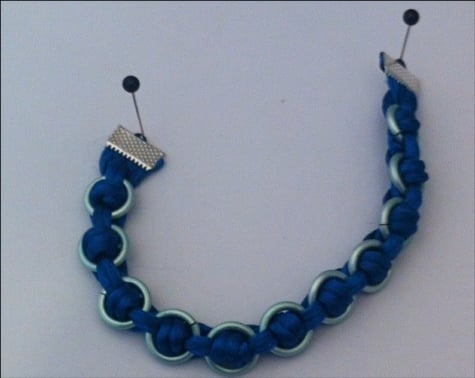 7. Ripetete i punti 5 e 6 fino ad aver raggiunto la lunghezza desiderata. Nel mio bracciale ho inserito 11 anelli (è la versione donna da circa 17cm.).