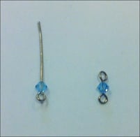4. Inserite su di un chiodino ad asola un bicono, con le pinze formate la seconda asola per chiudere il chiodino come da foto. Ripetete fino ad avere 5 biconi su altrettanti