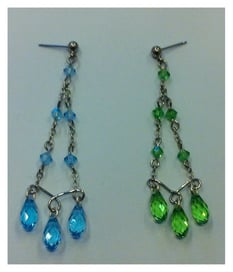 6. Agganciate all'ultimo bicono un perno da un lato ed entrambe le catenelle dell'orecchino all'altro. Ripetete dall'inizio per realizzare il secondo orecchino.