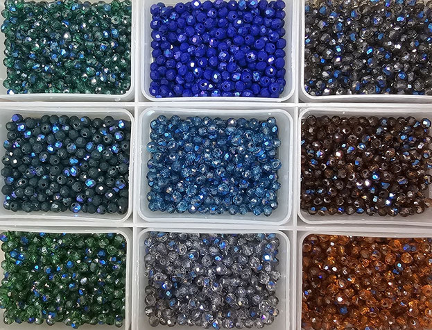 Sono arrivati i nuovi colori di Cipollotti 3x4mm colori trasparenti con effetto Aurora Boreale (AB), super luminosi : verde smeraldo, verde foresta, blu china, grigio azzurro,