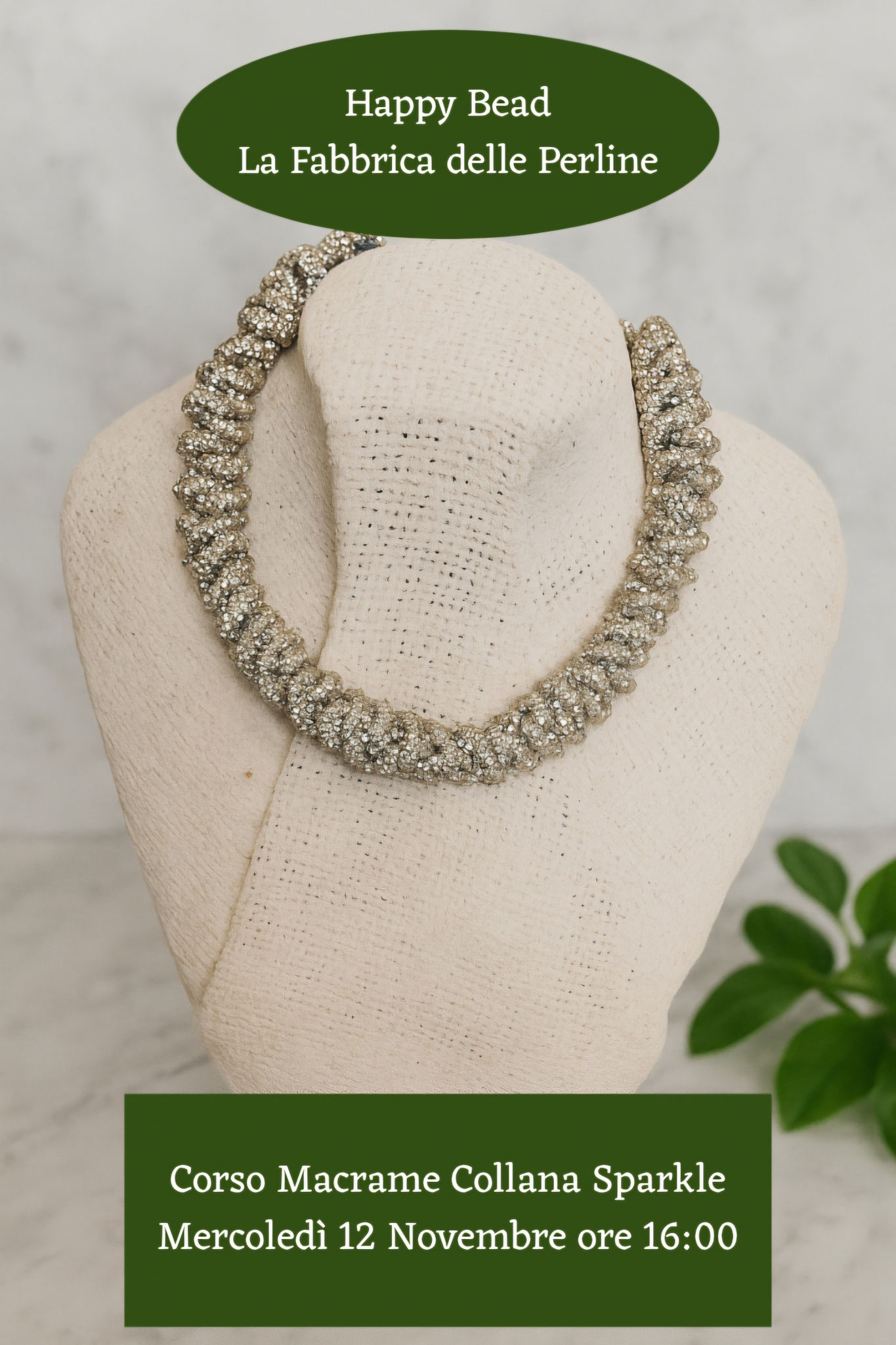 | 12 Novembre | Mercoledì | 16:00-19:00 | 413 Macramè Collana Sparkle |