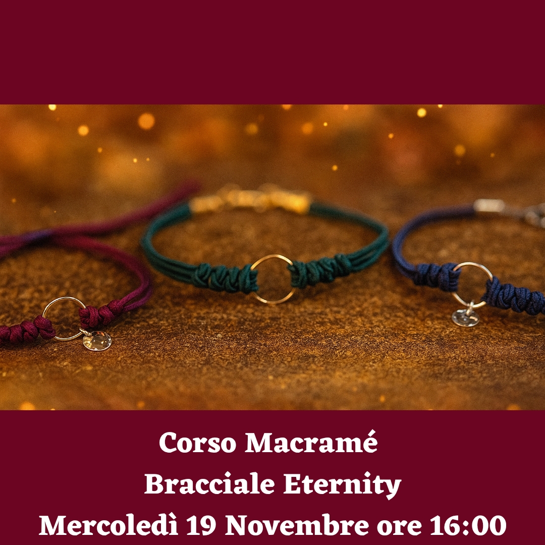 | 19 Novembre | Mercoledì | 16:00-18:00 | 412 Macramè Bracciale Eternity | € 55,00 | |